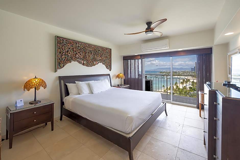 Enjoy stunning ocean views from this studio condo, located in the only condominium building on Waikiki Beach. Perfect for couples or solo travelers, this cozy retreat offers everything you need for a relaxing stay by the beach. • Waikiki Shore address is: 2161 Kalia Road, Honolulu, HI 96815 • Guest must check-in at Regency on Beachwalk, 255 Beachwalk, Honolulu, HI 96815 • Kitchen includes stovetop, oven, microwave, refrigerator, coffeemaker, blender, rice cooker, cookware and tableware • Welcome essentials kit includes coffee, tea, sugar, creamer, dish soap, sponge, paper towels, dishwasher detergent & laundry detergent • 1 queen bed or 2 twin beds • Tub/shower combination • Bath amenities include shampoo/conditioner, soap & hair dryer • Air conditioning and ceiling fan • Drapes • Washer/dryer in unit • TV with standard cable • Wi-Fi • In-room safe • Iron and board • Smoke detectors and fire sprinklers • Balcony with furniture • Children 17 years and under are free when sharing room with parent(s) utilizing existing beds Each unit has its own unique décor and furniture